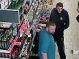 Widoczni na zdjęciu mężczyźni ukradli alkohol o wartości blisko 1300 zł. Podejrzewani o kradzież dwukrotnie kradli przedmioty ze sklepu. Najpierw w dniu 30 czerwca o godzinie 11.30 , a następnie 11 lipca o godz. 9.30.