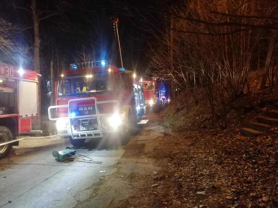 Jak informują strażacy z OSP Rycerka Dolna, po dotarciu na miejsce cały budynek był objęty ogniem, mieszkańcy o własnych siłach wydostali się na zewnątrz.