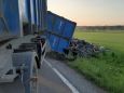 To efekt wywrócenia się ciężarówki z odpadami, do którego doszło dziś przed godz. 5.00 w Brzezówce na ul. Hażlaskiej.