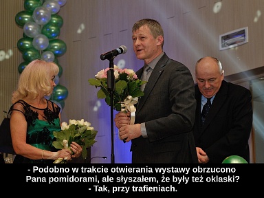 czyli o tym, że niektórzy do lasu chodzą bez gumiaków, za to z uśmiechem na ustach... Na zdjęciu zastępca wójta gminy Jeleśnia Bronisław Jafernik i Paweł Szczotka z Kroniki Beskidzkiej.