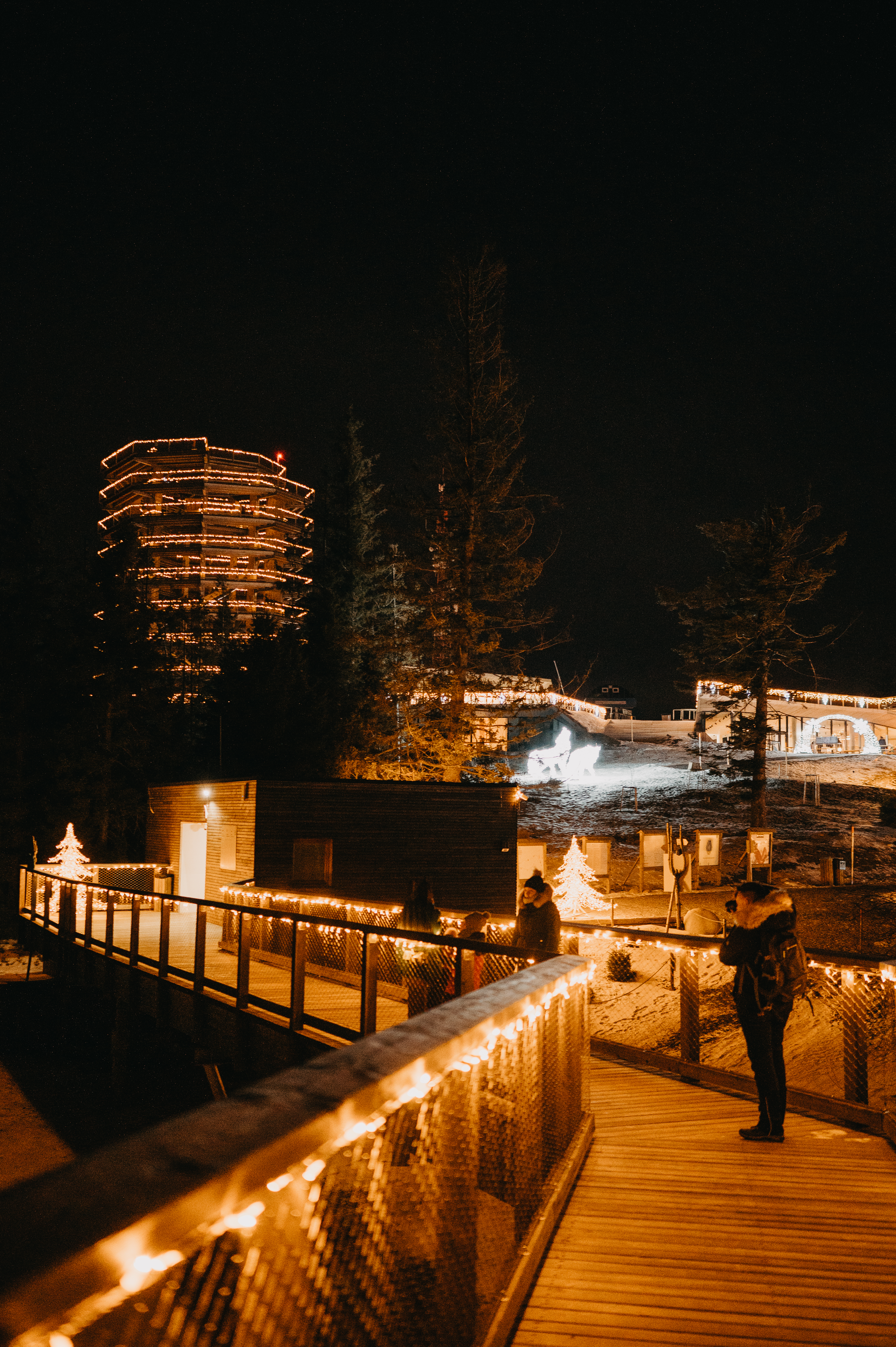 W każdą środę, piątek i sobotę w czasie od 17:00 do 21:00 czeka na zwiedzających wieczorny spacer po Ścieżce w Koronach Drzew oraz pełna rozrywki jazda na sankach w blasku księżyca i gwiazd. Ścieżka w Koronach Drzew oświetlona jest łańcuchem świetlnym o długości 1234 m. Tuż przed wejściem znajduje się wystawa świetlna, która wciągnie Cię do magicznego świata świateł. Ciesz się wieczorną jazdą na sankach na trasie saneczkowej o niesamowitej długości 2,5 km i zdobądź nowe doświadczenia. Wieczorne niebo dodaje całości niepowtarzalnego magicznego klimatu.