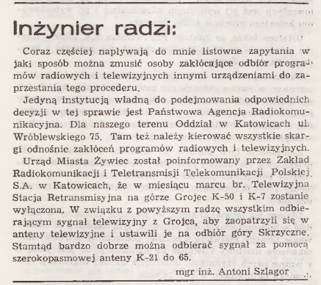 Przeglądając archiwalia można odnieść wrażenie, że niewiele się w Żywcu zmieniło. Problemy te same, nazwiska te same. I ciekawe ogłoszenia („Poszukuję dochodzącej opiekunki…”). W tamtym czasie gazeta wydawana była w nakładzie 6,5 tys. egzemplarzy. Wiele z archiwalnych numerów znajdziecie w Żywieckiej Bibliotece Samorządowej. Miłej lektury!