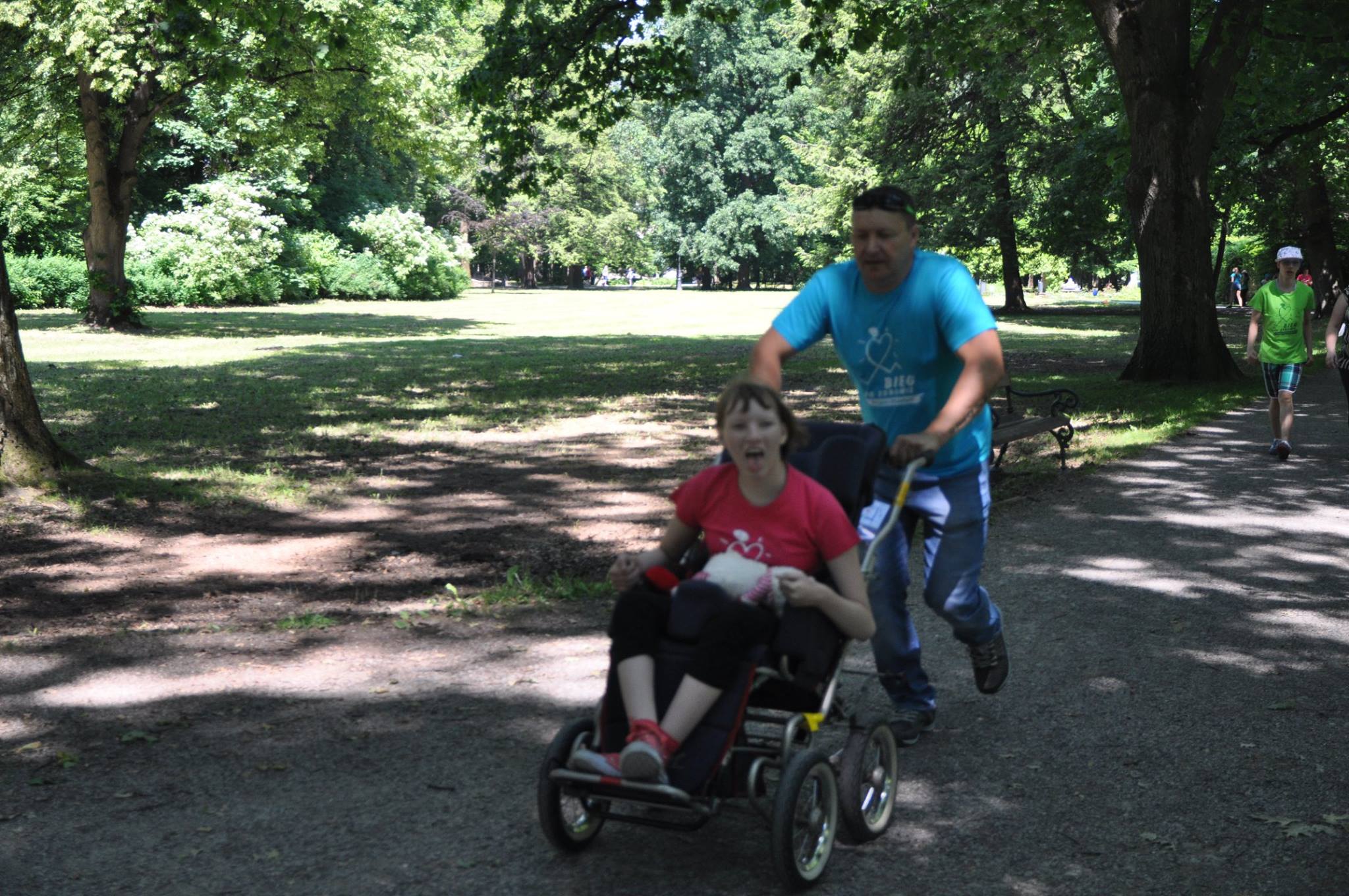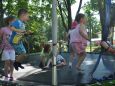 Dla niektórych uczestników festynu to właśnie Bieg po Zdrowie był najbardziej wyczekiwanym wydarzeniem tego dnia. Jury biegowe zarejestrowało 250 uczestników. Biegały osoby w różnym wieku, konkurowali ze sobą niepełnosprawni, amatorzy i profesjonalni biegacze. Jedni biegli, inni szli z kijkami, jeszcze innym towarzyszyły pieski. Mnóstwo uczestników postanowiło pokonać wyznaczone okrążenia wspólnie całymi rodzinami. Byli też tacy, którzy zapalczywie zdobywali kolejne kilometry w parach: dziecko niepełnosprawne w wózku z opiekunem. I tak przez dwie godziny żywiecki park zamienił się w kolorowy i radosny raj dla biegaczy. Mnóstwo zawodników potraktowało start bardzo poważnie. Pomimo upalnego dnia niektórzy zwycięzcy pokonali kilkanaście kilometrów. Dwóch biegaczy przebyło trasę ponad 20 razy (20 i 22 km)! W różnych kategoriach przyznano 14 pierwszych miejsc, 15 drugich i 17 trzecich. Wszyscy zwycięzcy otrzymali piękne ceramiczne wykonane w pracowni fundacji medale. To nie wszystkie atrakcje , które przygotowaliśmy dla uczestników festynu. Ponad 350 dzieciaków otrzymało nagrody za wytrwałe uczestnictwo w animacjach, dla wszystkich dzieci przygotowaliśmy bezpłatny posiłek lody i kiełbaski z grilla. Rodzice również mogli posilać się w ogrodowej kawiarence.