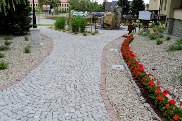 Jeszcze w ub. roku usunięto znaczną część nadmiernie wybujałych zarośli, dzięki czemu uzyskano dodatkową przestrzeń. Powstały nowe alejki z kostki brukowej, ustawiono tablice z informacjami o gminie, kolejne ławki i przede wszystkim nasadzono kwiaty i krzewy odpowiednie do założeń tego rodzaju zakątka zieleni.