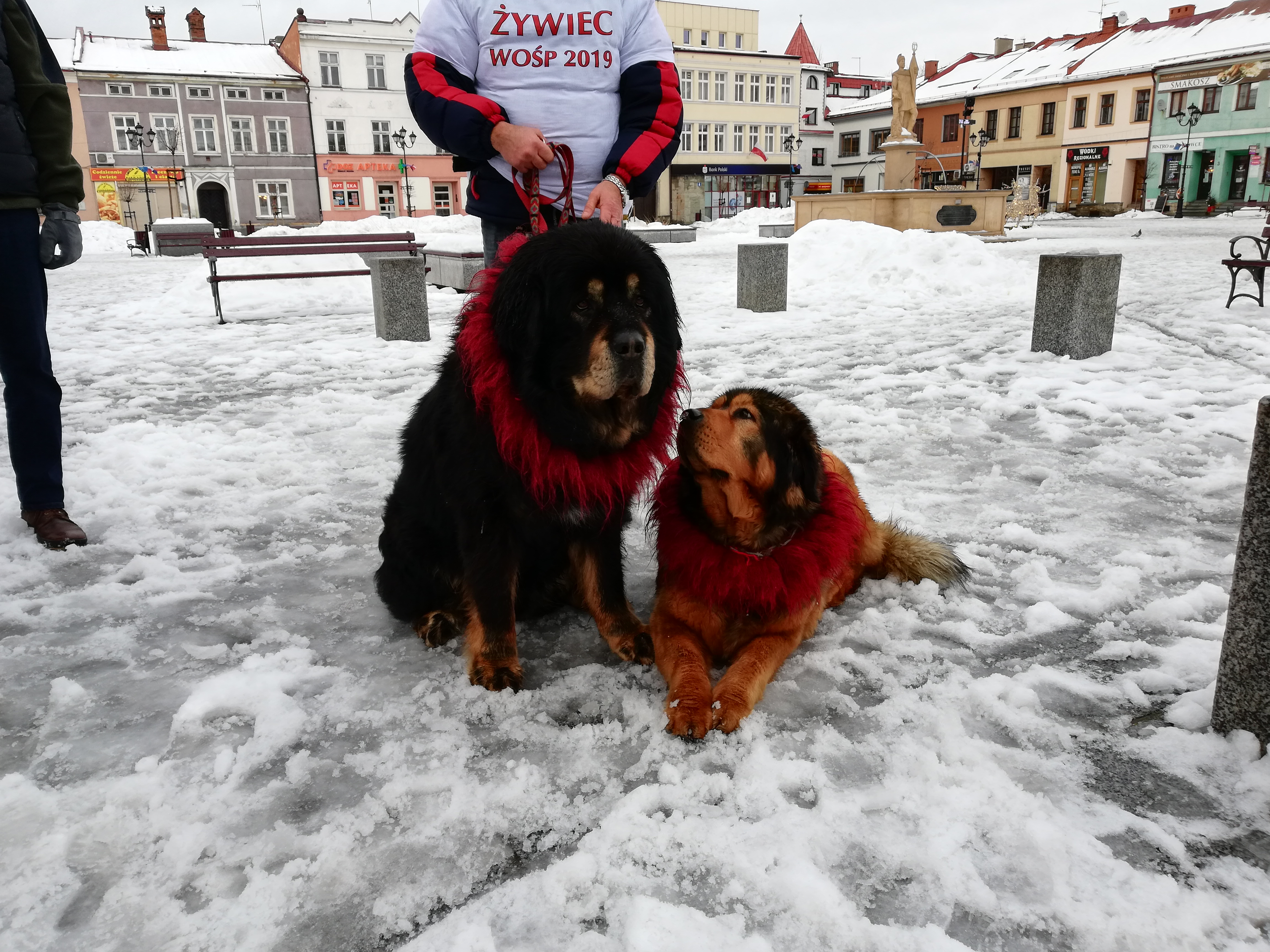 Na żywieckim Rynku ciekawa „ekipa” zbierała datki na WOŚP w towarzystwie dużych czworonogów.