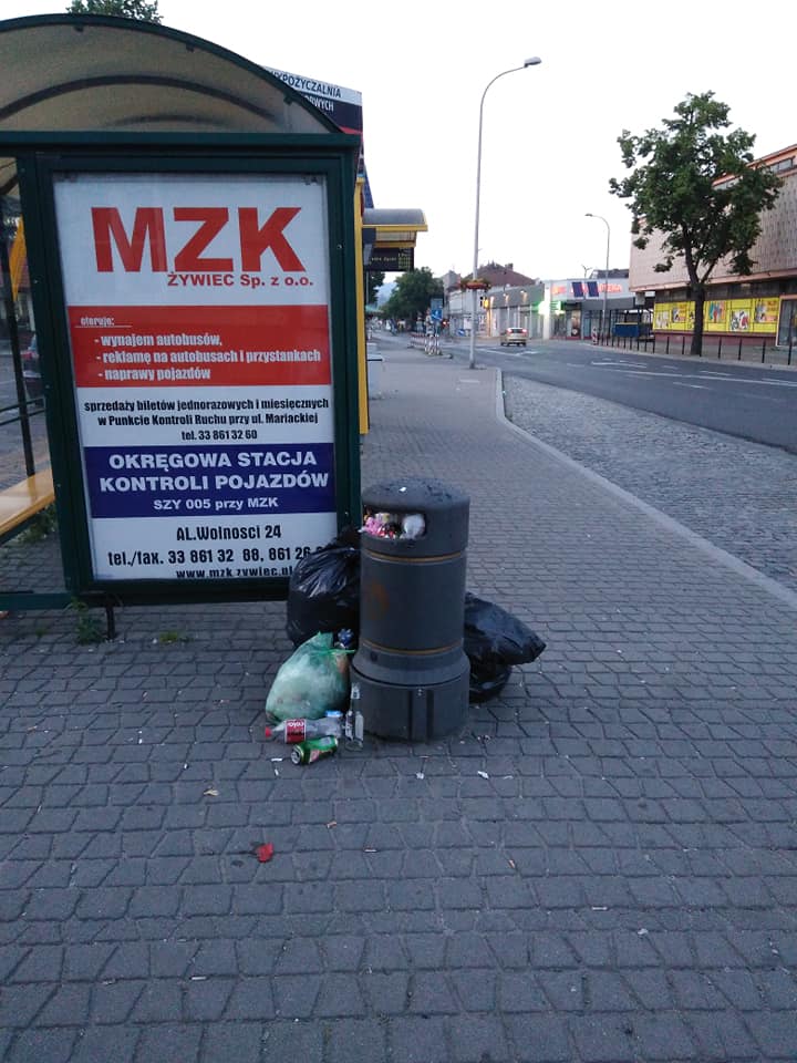 Nasz Czytelnik zwraca uwagę na dużą ilość przepełnionych koszy na śmieci na terenie Żywca, a w szczególności w Zabłociu.