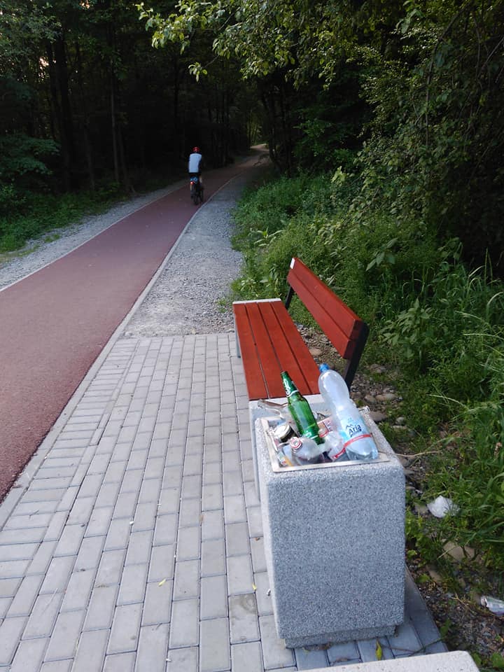 My z kolei zauważyliśmy niemałą i rosnącą kupę śmieci w miejscu obok dzikiego kąpieliska rzecznego pod mostem kolejowym, czyli praktycznie przy ścieżce dydaktycznej. Można ganić śmiecenie, ale fakt złożenia odpadów w jednym miejscu może świadczyć o tym, że i tam przydałby się kosz o tej porze roku.