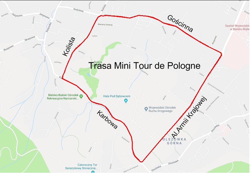 Ponadto ulice: Gościnna, Karbowa, Kolista (od ul. Karbowej do ulicy Gościnnej) będą zamknięte dla ruchu pojazdów pomiędzy godzinami 11:00 – 17:00. W związku z powyższym wjazd na parkingi przy ul. Karbowej możliwy będzie do godz. 11:00 ulicami Kolistą i Karpacką.